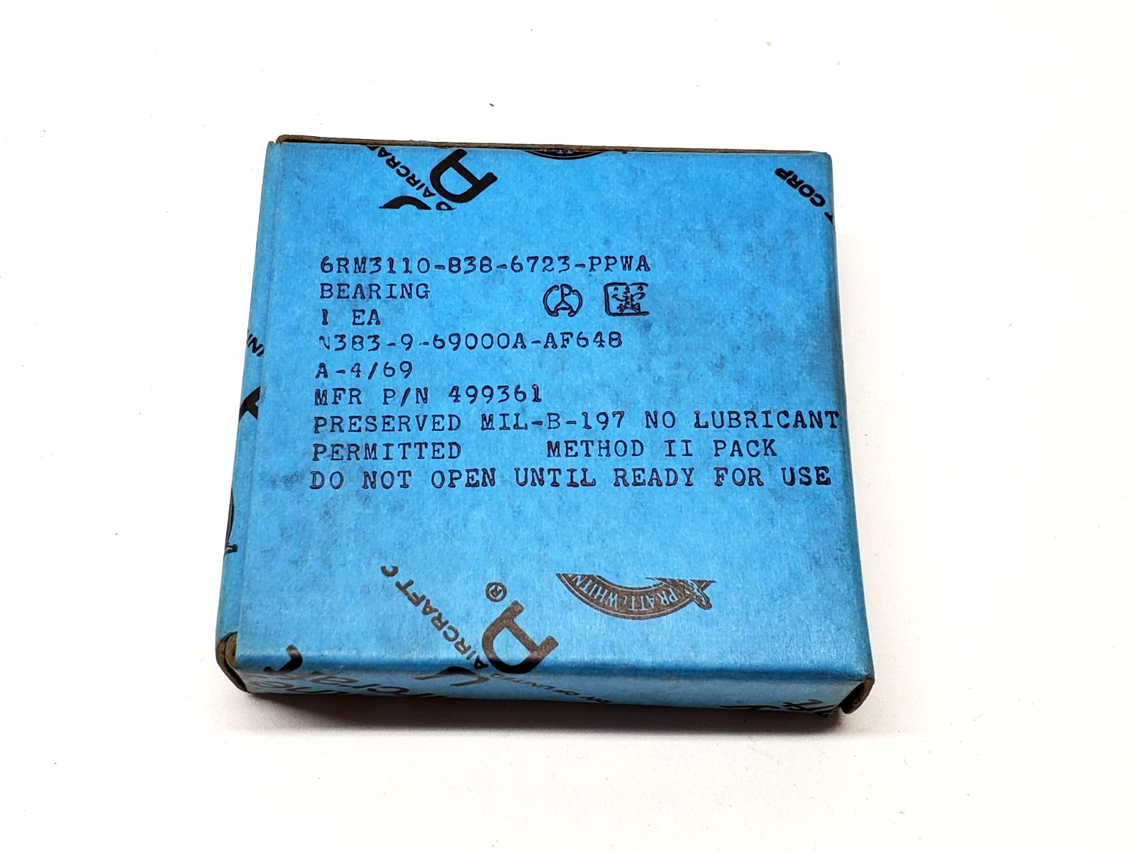 Offered is an original Pratt & Whitney Aircraft bearing, P/N 499361, manufactured and preserved in 1969. This is New Old Stock (NOS) and remains in its original Pratt & Whitney preservation wrap, marked per MIL-B-197 Method II.